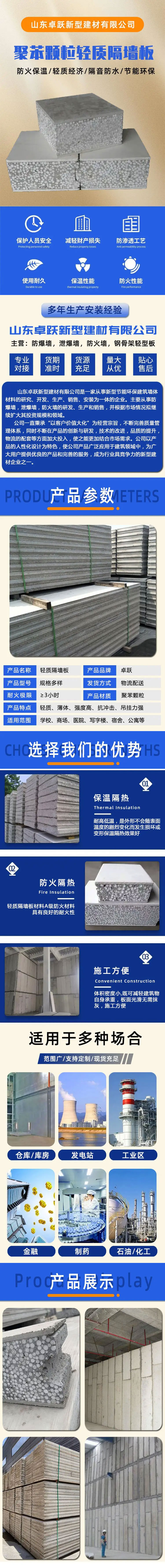 乳山水泥发泡 聚苯颗粒复合酒店办公楼 新型轻质隔墙板
